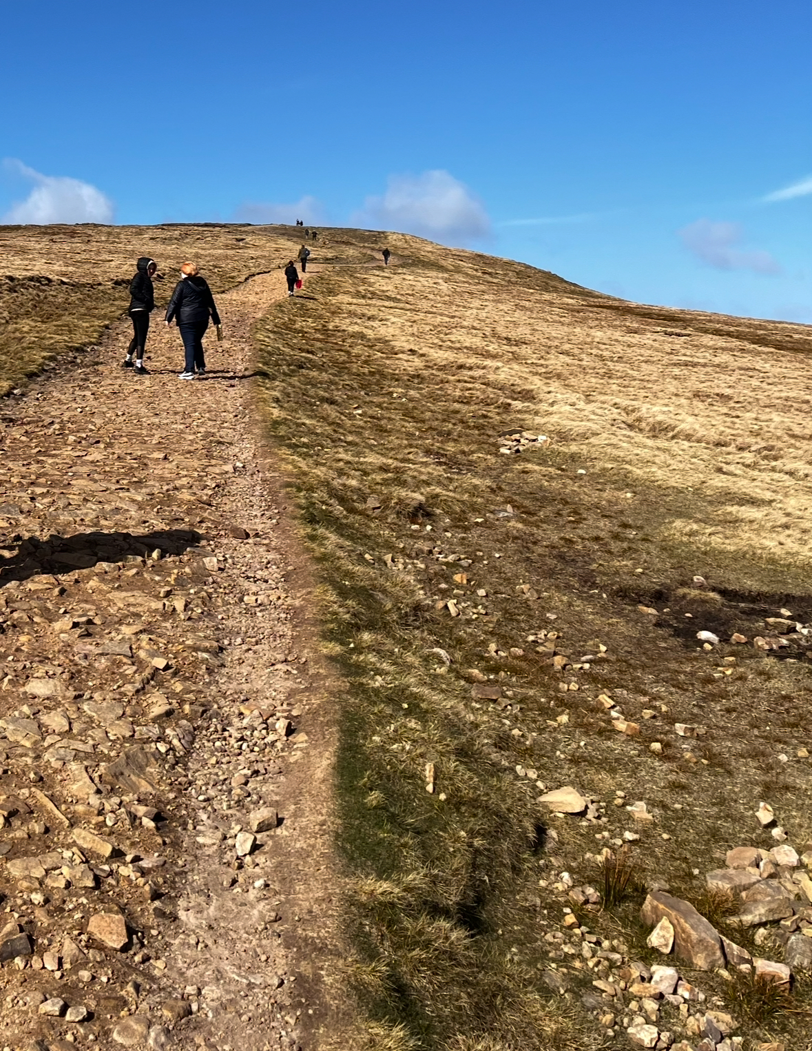 On a recent visit to the land of my birth (Lancashire, England), my family and I decided we would climb up Pendle Hill once again. I got to thinking that perhaps it will be the last time, I can climb up it (we tend to visit every ten years or so and I was approaching seventy, after all). Realising that I hadn’t written anything about this landmark which has such a special place in my heart, I began to see what other people had written about it. I discovered the old song, an excerpt of which features below, and then a poem on a poetry site drew my attention not because of the poem itself but because of a comment below it, coming from fellow poet, Milly Hayward.